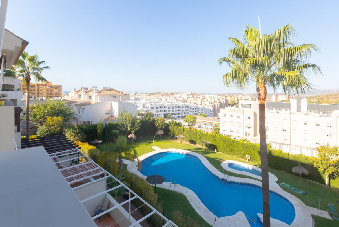 Apartment in the center of Estepona, just 800 meters from the beach. It has one double and one single bedroom, one bathroom, and a fully equipped kitchen. It also has extras such as air conditioning, built-in wardrobes, and a communal pool.