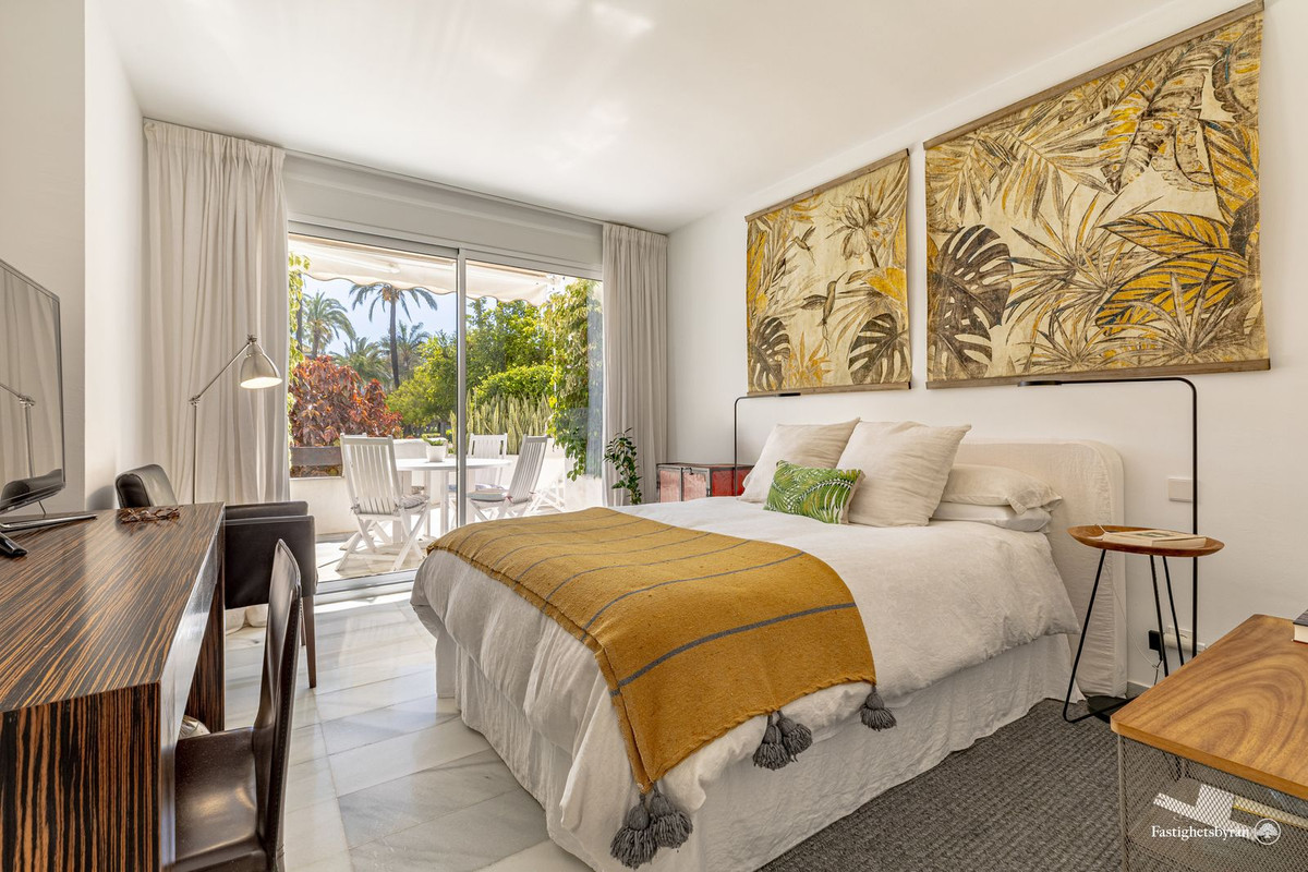 Alcazaba Beach magnificent apartment with large terrace, garden, swimming pool and partial views to the Mediterranean, in exclusive beachfront urbanization, with direct access to the beach, beach bar and restaurant on site, communal parking, 24 hour security, beautiful tropical gardens very well kept, 6 swimming pools (one heated), tennis and paddle courts. It is located on the outskirts of Estepona, with all kinds of services around and only 5 minutes drive from the marina and 10 minutes from Puerto Banus.