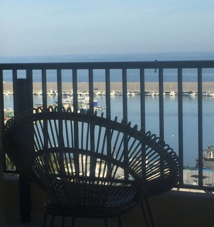 • Private balcony offering breathtaking views of the beach and port.