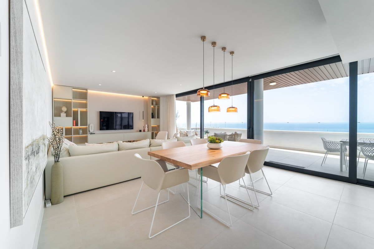 Luxury south facing apartment, in the exclusive urbanization of Higuerón West, with 3 bedrooms, 2 bathrooms and guest toilet, spacious living-dining room, open plan kitchen fully furnished and equipped with electrical appliances, laundry area with washing machine/dryer, large terrace of 41m2 with panoramic sea views.