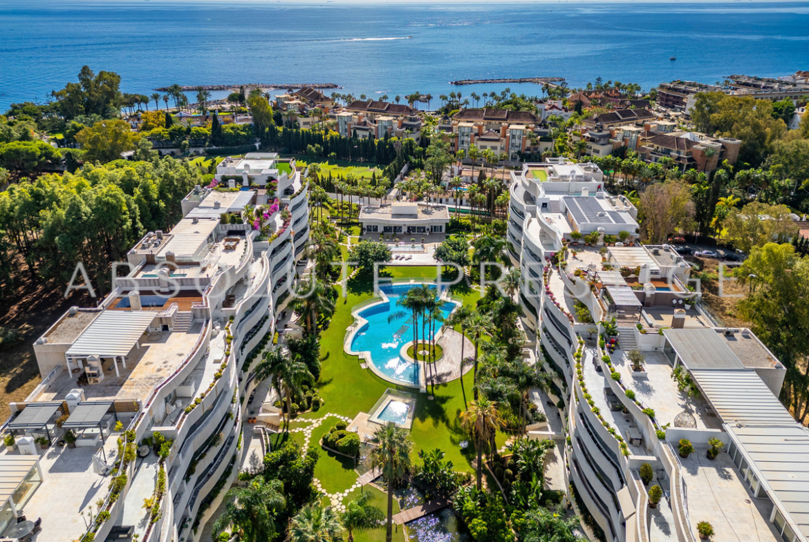 This exclusive apartment is located in the renowned residential complex El Embrujo Banús, just a few steps from the famous Puerto Banús marina in Marbella. The location is distinguished by its immediate proximity to amenities, shopping facilities, public transport, and the beach. The residential complex offers a high level of security with 24-hour security service, surveillance cameras, and a gated community.