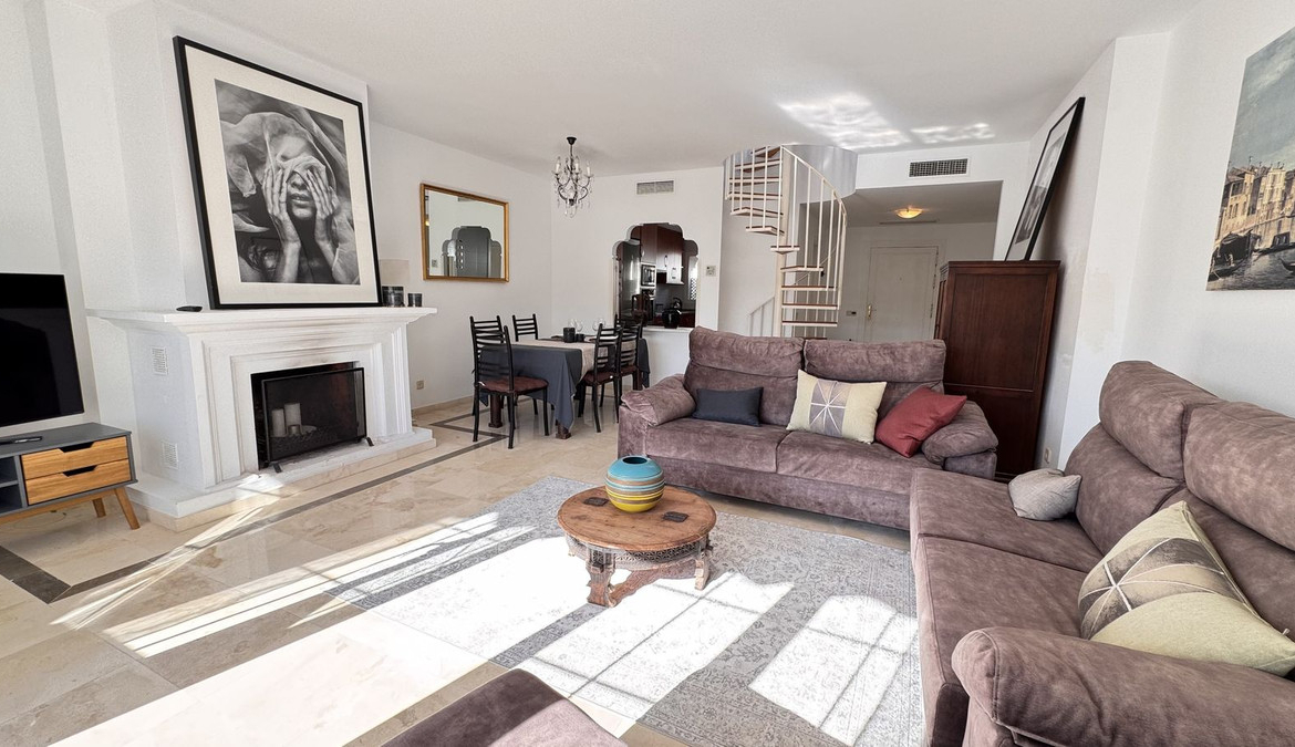 Spacious Duplex Living: The penthouse boasts a bright, well-distributed layout and features a large private rooftop solarium. This expansive terrace is ideal for sunbathing, creating a stylish chill-out lounge, or enjoying the coastal sea breezes and views. The location is strategically positioned between Marbella and Estepona, offering quick access to Puerto Banús, San Pedro, international schools, and essential services.