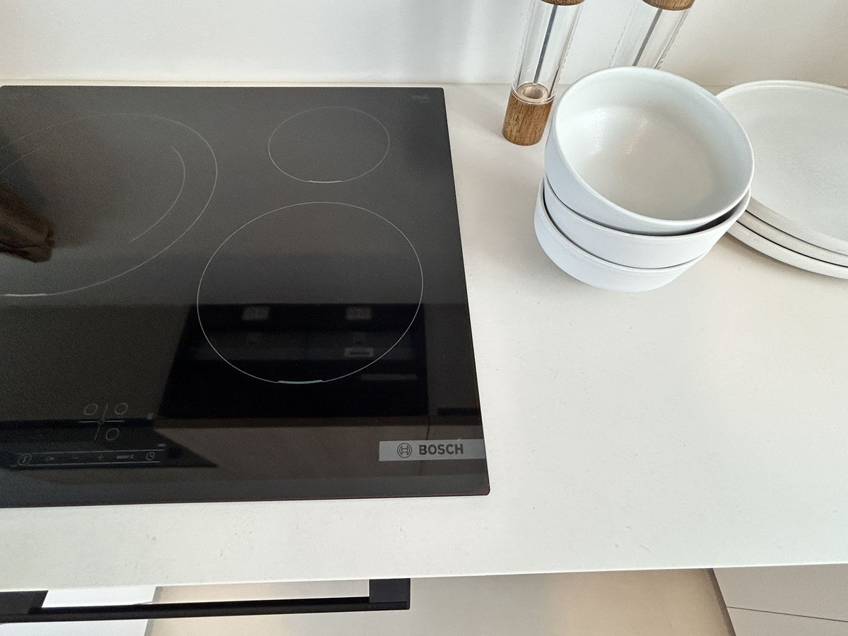 It features a home automation system and smoke detectors, as well as Jung appliances. The modern and functional kitchen features high and low cabinetry, a Silestone countertop, and paneled appliances with an A energy rating (hob, oven, microwave, extractor hood, refrigerator, dishwasher, and washer-dryer). The bathrooms feature wall-hung toilets, extra-flat shower trays with screens, and the master bathroom features a double sink with integrated cabinetry.