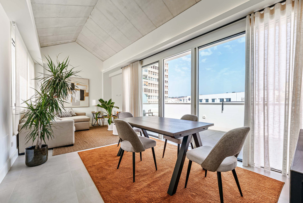 This stunning penthouse is located in a charming four-storey building constructed in 2021, right in the heart of Malaga's Historic Centre. With 122 m² of built area and two terraces totaling 52 m², the property boasts a sleek contemporary design and high-quality finishes throughout.