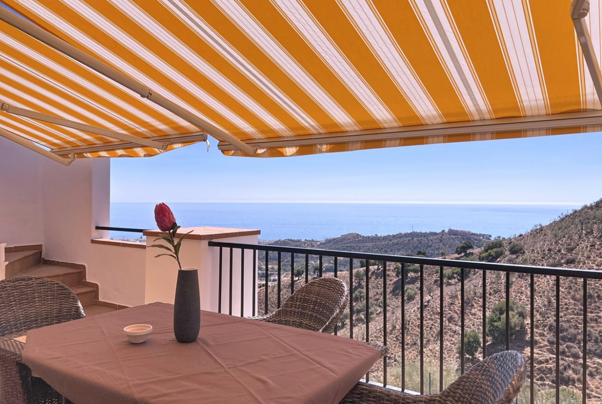 Modern penthouse located in one of the most desirable residential areas of Rincón de la Victoria. Built in 2015, this property offers an exceptional combination of comfort, privacy and contemporary design. The apartment features two bedrooms and two bathrooms, including a master suite with an ensuite bathroom and direct access to the spacious terrace with open sea views. One of the bathrooms includes a whirlpool bathtub, and both benefit from underfloor heating. The bright and airy living-dining area connects seamlessly with the terrace, creating an ideal space to relax and enjoy the Mediterranean climate. From the terrace, an external staircase leads up to a large private solarium perfect for sunbathing, entertaining or admiring the panoramic coastal views. Additional features include air conditioning with heating, fly screens on all windows, a wall safe, and an alarm system. The residential complex is fully fenced and secured, and offers outstanding communal facilities including three swimming pools and two padel courts, surrounded by beautifully maintained gardens. The property also includes two private parking spaces and a storage room. Ideally located just 20 minutes from Málaga and 30 minutes from the airport, and close to the beach and all amenities, this penthouse is an ideal choice for year-round living or as a second home on the Costa del Sol. We are pleased to be able to present this dream property to you soon, either personally or via virtual viewing. Because this world is unique – just like our Axarquía. In Andalusia. On the Costa del Sol. Here, on the sunny side of life…