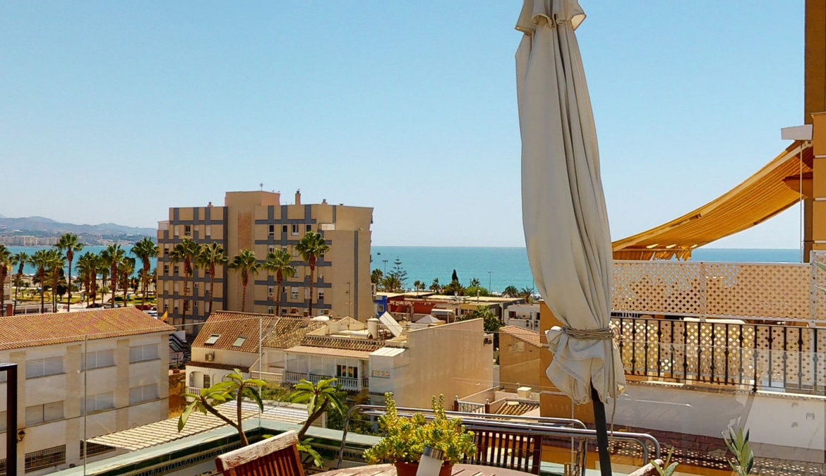 Exclusive duplex penthouse in the heart of Torre del Mar, next to the promenade, and within walking distance of bars, restaurants and stores. It ́s also next to the emblematic Paseo Larios. The property, recently renovated to the highest standards, has many windows, which allows a lot of natural light. From every of the three terraces you have a lovely view over Torre del Mar up to the sea. The penthouse has 2 floors and a roof terrace. On the first floor of the duplex, we find a modern and fully equipped kitchen with high-end appliances, a living room that connects to a beautiful, covered terrace, 2 bedrooms and a bathroom. It also has a storage area, which was previously another bathroom. On the upper floor we find an imposing and modern bathroom, the spacious master bedroom and a second bedroom. Both connect to a beautiful terrace overlooking the sea. All rooms have large, fitted closets. This exceptional property is perfect for those who want to be in the center of Torre del Mar and enjoy its vitality and full range of services, such as boutiques, restaurants, as well as schools, health centers and pharmacies. But also, to enjoy its proximity to the beach.