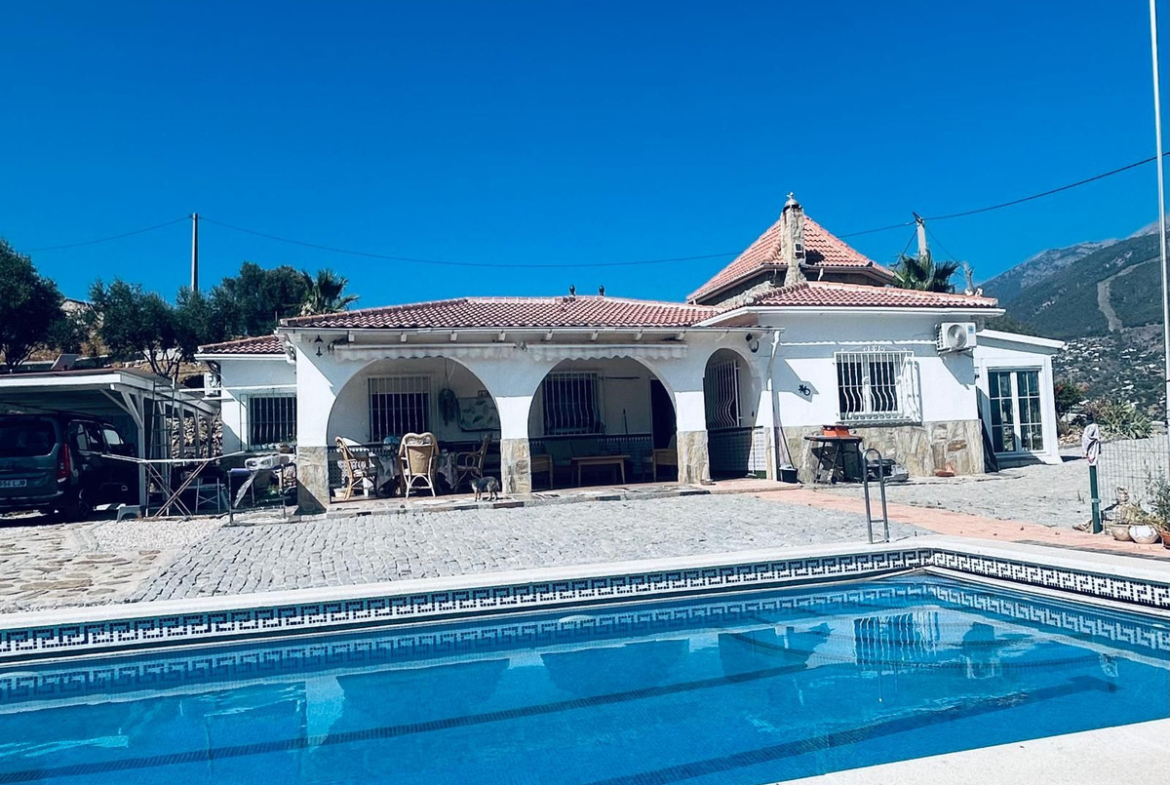 The magic of this property unfolds outdoors: a 5,000 m² plot that provides space, privacy, and a deep connection with the land. A covered terrace is ideal for long afternoons outdoors, while the private pool is perfect for cooling off on summer days. A garage with room for two cars and motorcycles, a storage room, and a 2,000-liter water tank ensure convenience and ample space.