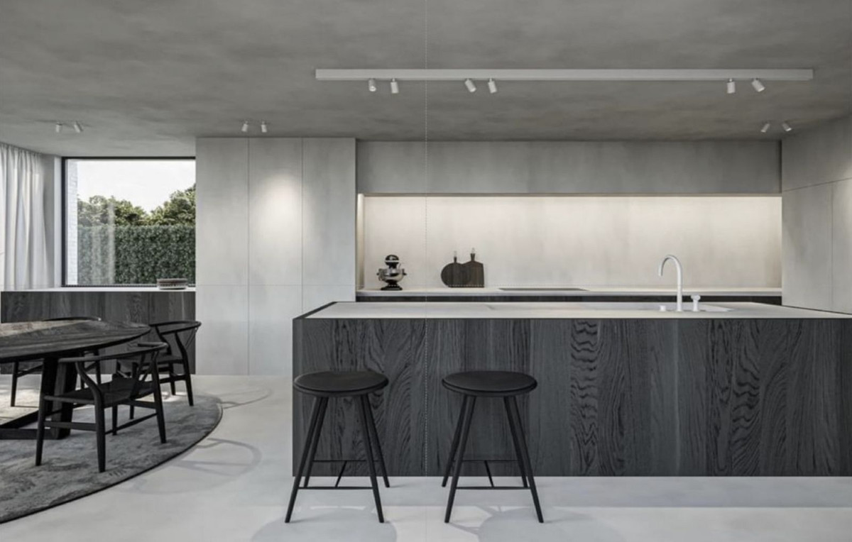 – Kitchen with steel frame doors covered with COVERLAM and kitchen island from COVERLAM