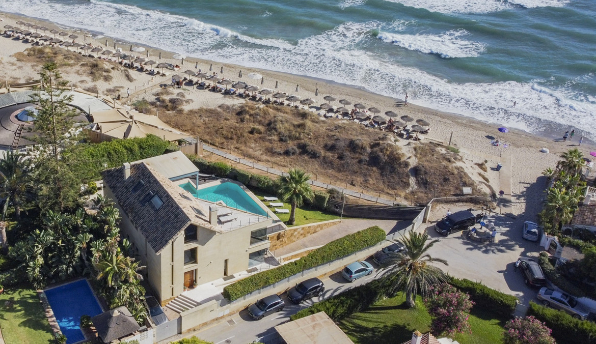 This villa not only boasts an exceptional frontline beach position but also close proximity to some of Marbella East's finest beach clubs, chiringuitos, and restaurants, while offering privacy and easy access to all amenities.