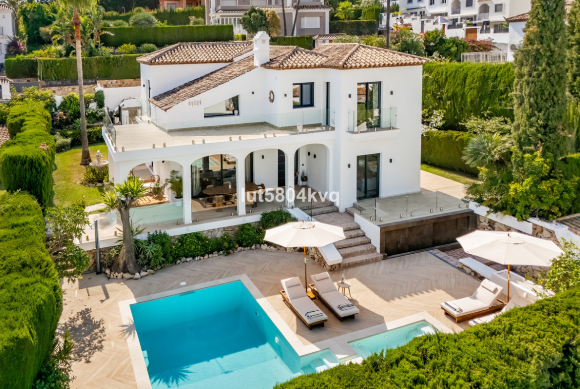 This lovely four-bedroom, newly renovated villa is located in the residential area of Nueva Andalucía, within the secure, gated community of Marbella Country Club.