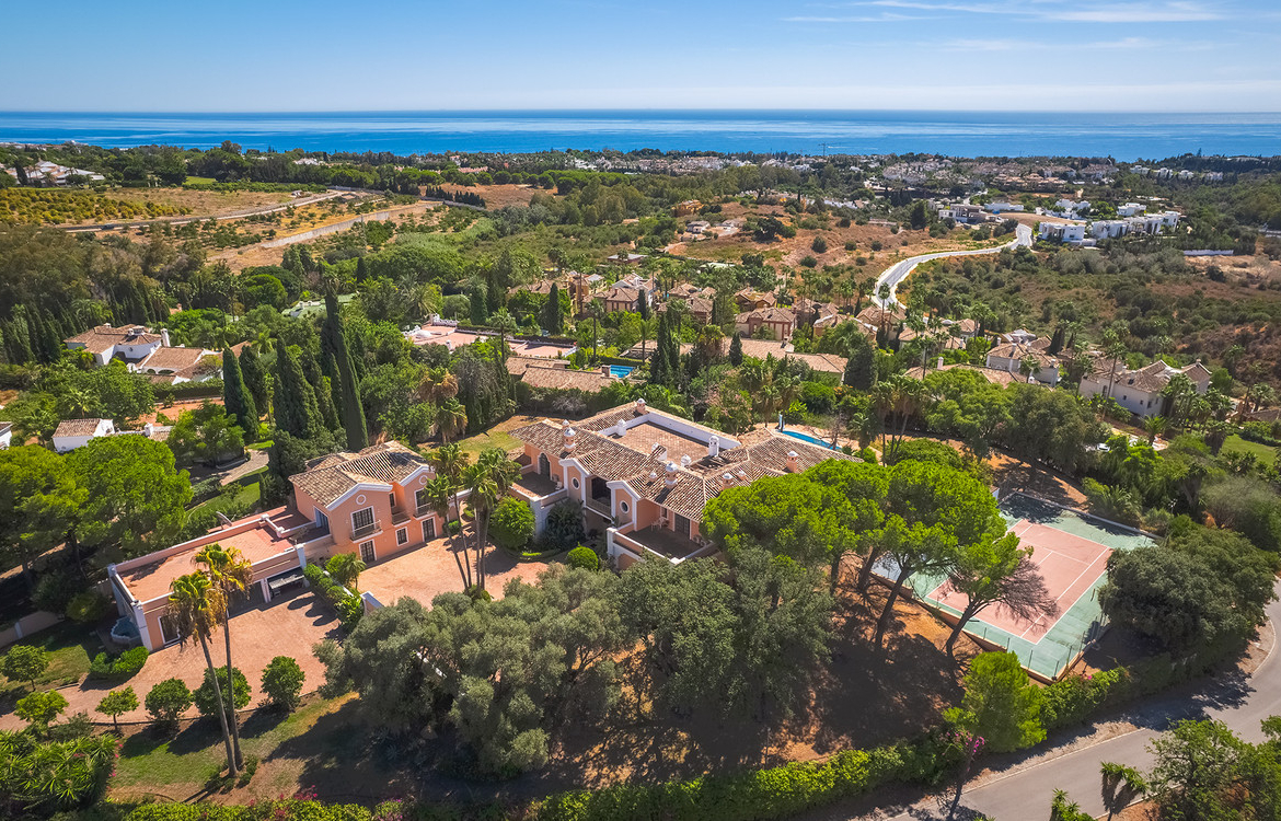 Situated within the prestigious enclave of La Capellanía, in the heart of Marbella's Golden Mile, this magnificent Mediterranean-style estate rests on an expansive 7,505 m² plot, enjoying breathtaking views of the sea, the majestic La Concha Mountain, and the property's own mature gardens. With a total built area of 1,811 m², the residence perfectly blends timeless Andalusian charm with generous proportions and refined elegance. It boasts 20 bedrooms in total, including guest and staff accommodation.