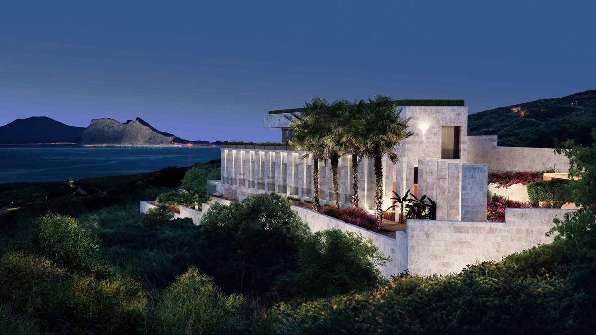 We present this exclusive new-build detached villa located in the Urbanización Invespania, just 5 km from Sotogrande, one of the most prestigious residential enclaves on the Costa del Sol. The property offers uninterrupted views of the Mediterranean Sea, Gibraltar, and the north coast of Africa.