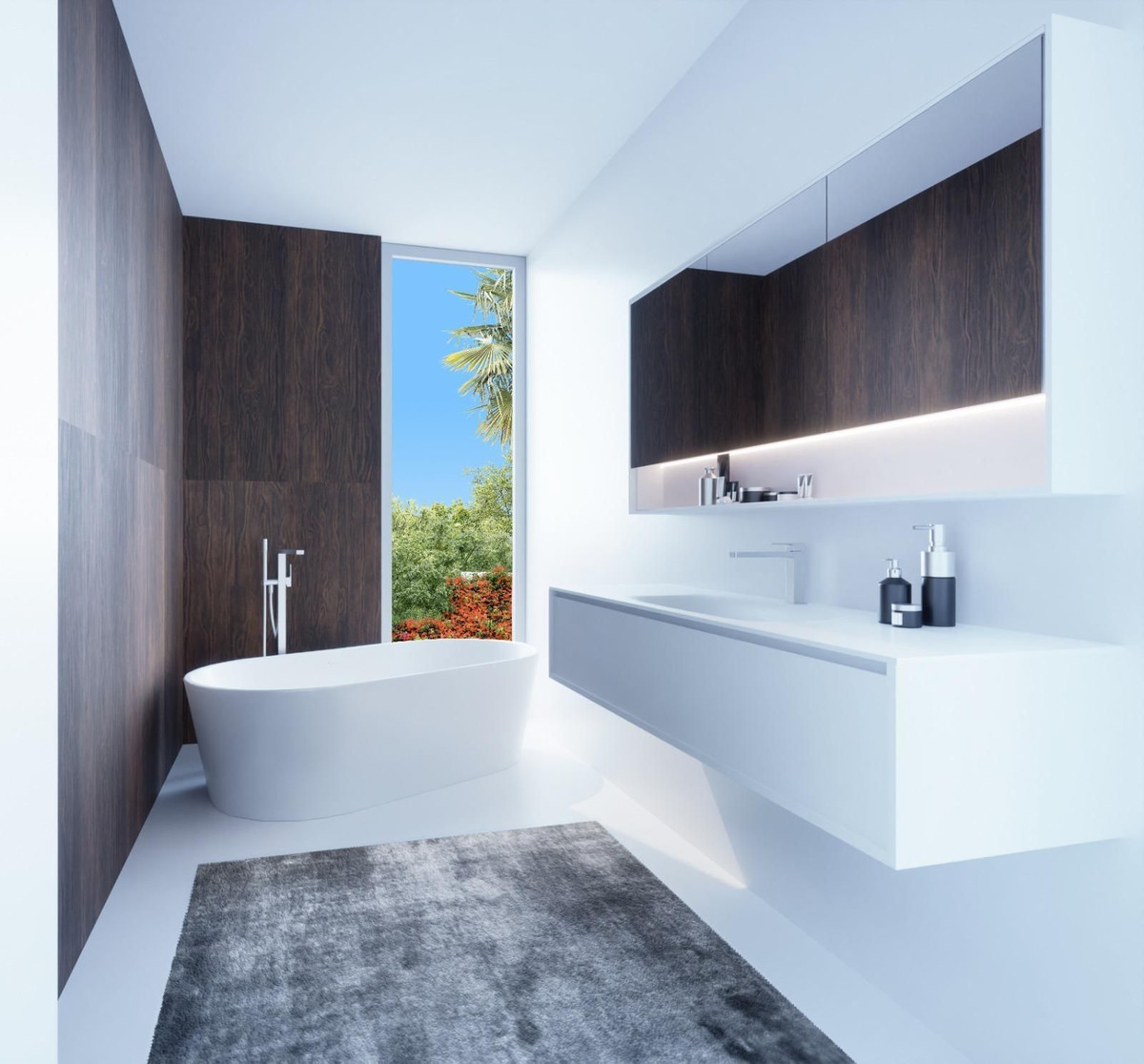 The residence, with a total built area of 436.91 m² plus 400 m² of terraces, is set on a 1,000 m² plot and was designed by an internationally renowned technical team. It is distributed into four en-suite bedrooms, all with built-in wardrobes and an orientation that maximizes natural light and views. The villa has a total of six bathrooms.