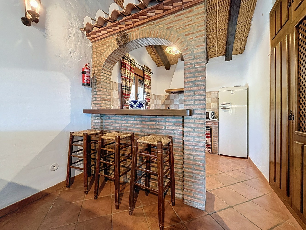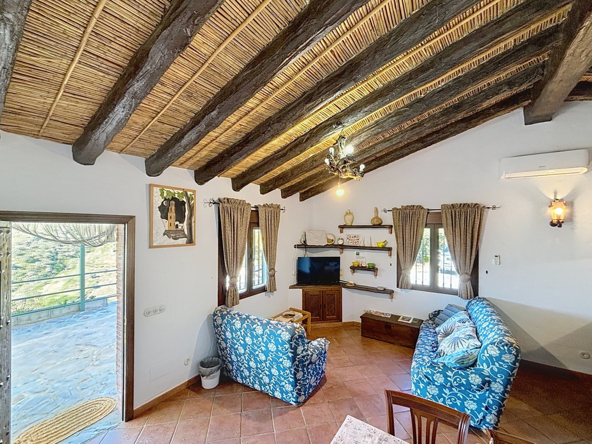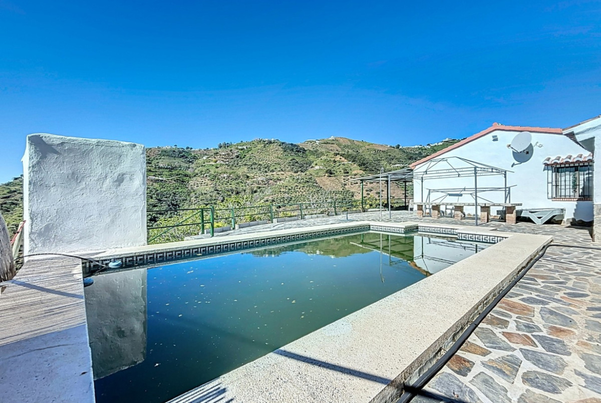 Nestled in the gentle hills below Cómpeta, with sweeping views of the surrounding mountains, this charming country house in traditional Andalusian style offers a peaceful retreat for nature lovers and those seeking tranquility. The single-storey house features a cosy living and dining area with an adjoining, typically Andalusian kitchen. Three bedrooms, one bathroom, and a separate guest WC provide comfortable space for family or friends. Underfloor heating and air conditioning in the main rooms ensure comfort all year round whether on hot summer days or cooler winter nights. Outside, a spacious covered terrace invites you to relax, while the refreshing pool, additional guest WC, and a small, built-in summer kitchen create the perfect setting for outdoor living and entertaining. The property is set on a natural plot with various fruit trees a beautiful frame for life under the southern sun. An authentic home full of character and modern comforts perfect as a holiday retreat or permanent residence in one of Andalusias most picturesque regions. We are pleased to be able to present this dream property to you soon, either personally or via virtual viewing. Because this world is unique – just like our Axarquía. In Andalusia. On the Costa del Sol. Here, on the sunny side of life…