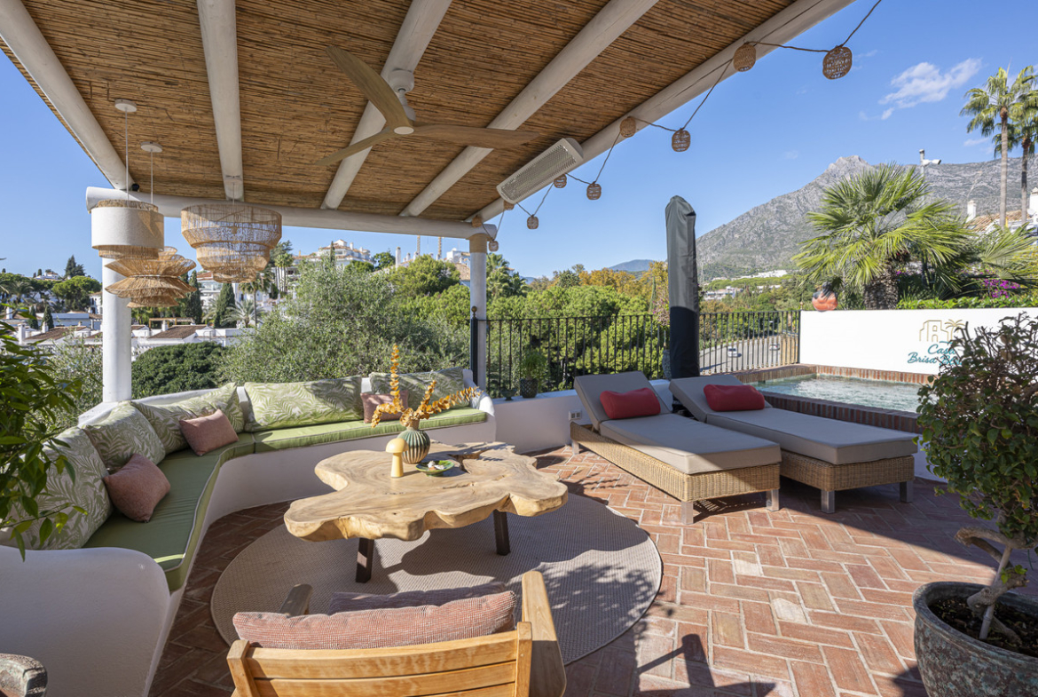 Situated in the sought-after urbanisation of Arco Iris in Altos de Puente Romano, this exceptional townhouse offers a rare opportunity to own one of the most spacious homes within the community. Set in the heart of Marbella's Golden Mile, just a short walk from the renowned Puente Romano Resort, the beach promenade, and charming dining venues at Forum, its prime location gives residence convenience, prestige, and Mediterranean lifestyle.